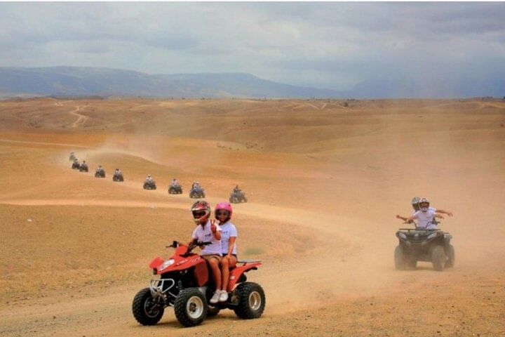 Ready to trade the ordinary for the extraordinary? Join us for an exhilarating day in the Agafay Desert, where you’ll feel the thrill of riding a quad bike across golden dunes and the serenity of a peaceful camel trek through stunning landscapes. With the Atlas Mountains as your backdrop, you’ll discover the desert’s hidden beauty and immerse yourself in its tranquil atmosphere. After your adventures, relax and savor a mouthwatering Moroccan lunch in a traditional Berber tent, where every bite is a taste of authentic culture. Don’t miss out on this unforgettable experience—book your adventure today and create memories that will last a lifetime!